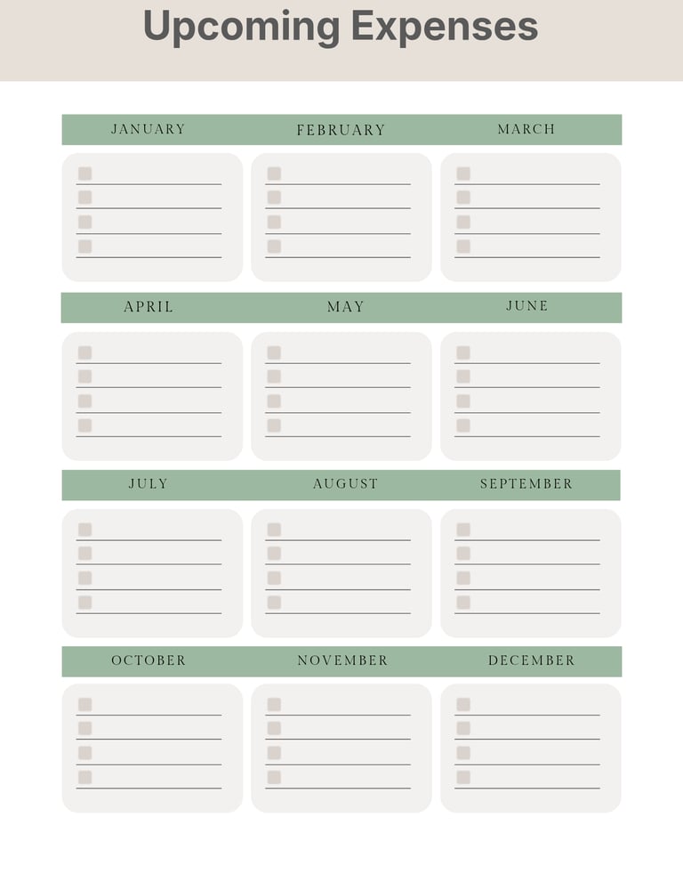 UPCOMING EXPENSES