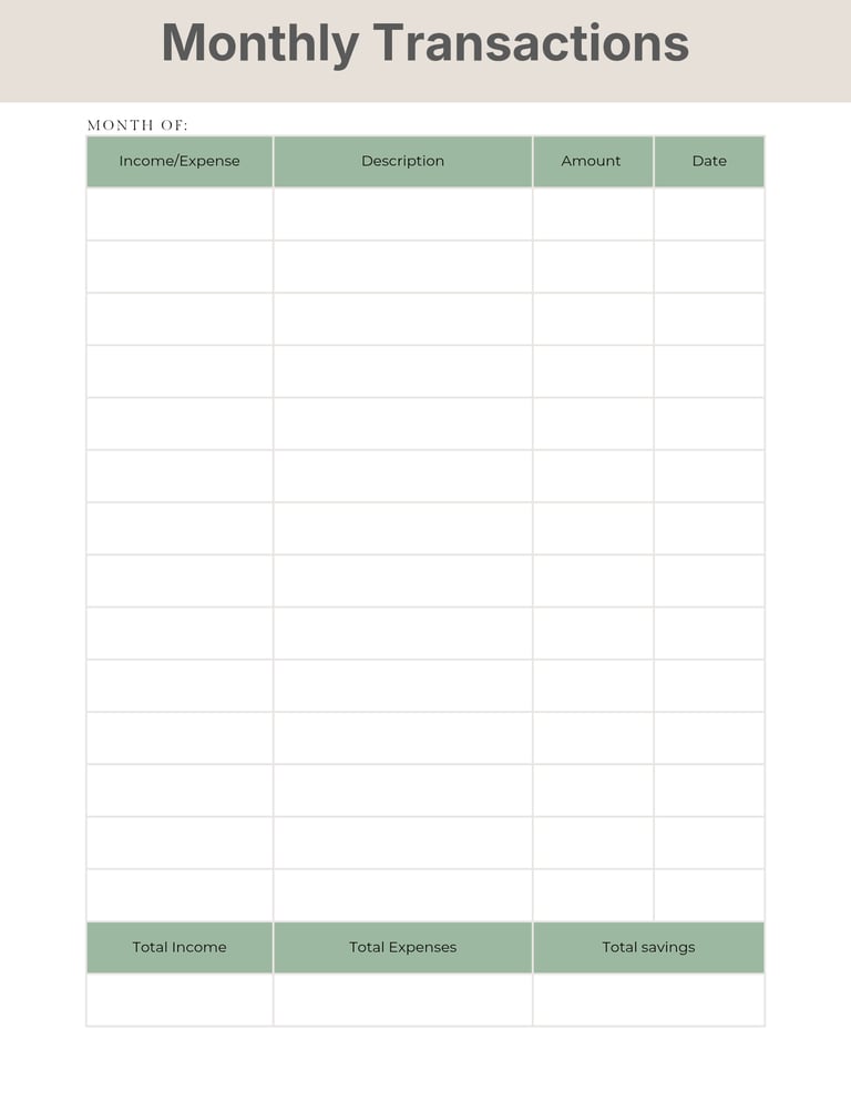 MONTHLY TRANSACTIONS
